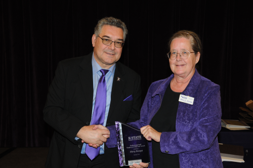 Mary Knapp, Assistant State Climatologist received the K-State Research and Extension Professional Staff Employee of the Year Award at the KSRE Annual Conference on Thursday. The citation describes her work as follows: